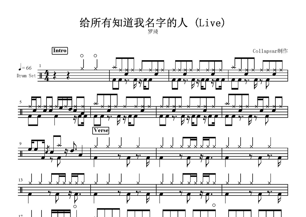 罗琦《给所有知道我名字的人》鼓谱 - 架子鼓谱 - Live