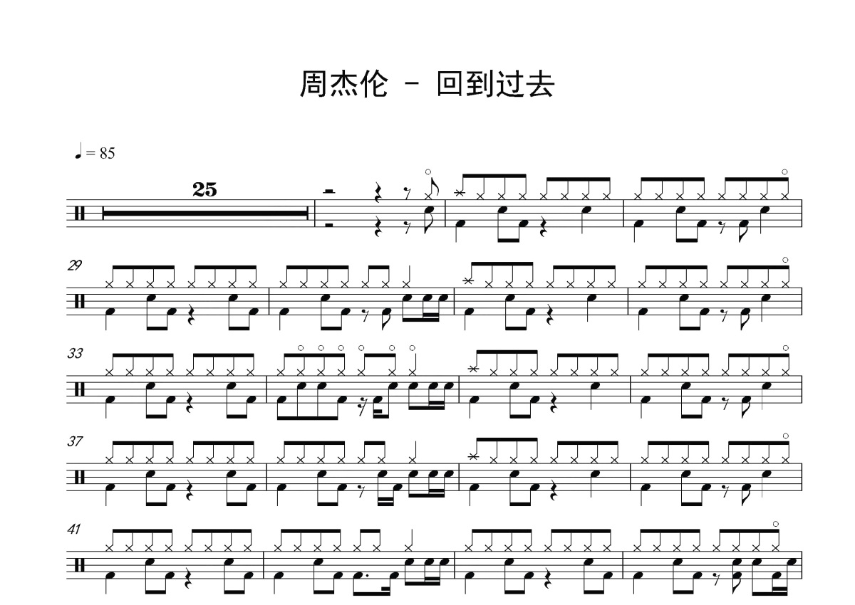 周杰伦《回到过去》鼓谱 - 架子鼓谱