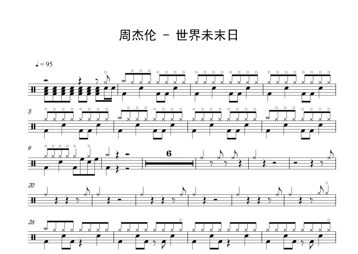 周杰伦《世界未末日》鼓谱 - 架子鼓谱