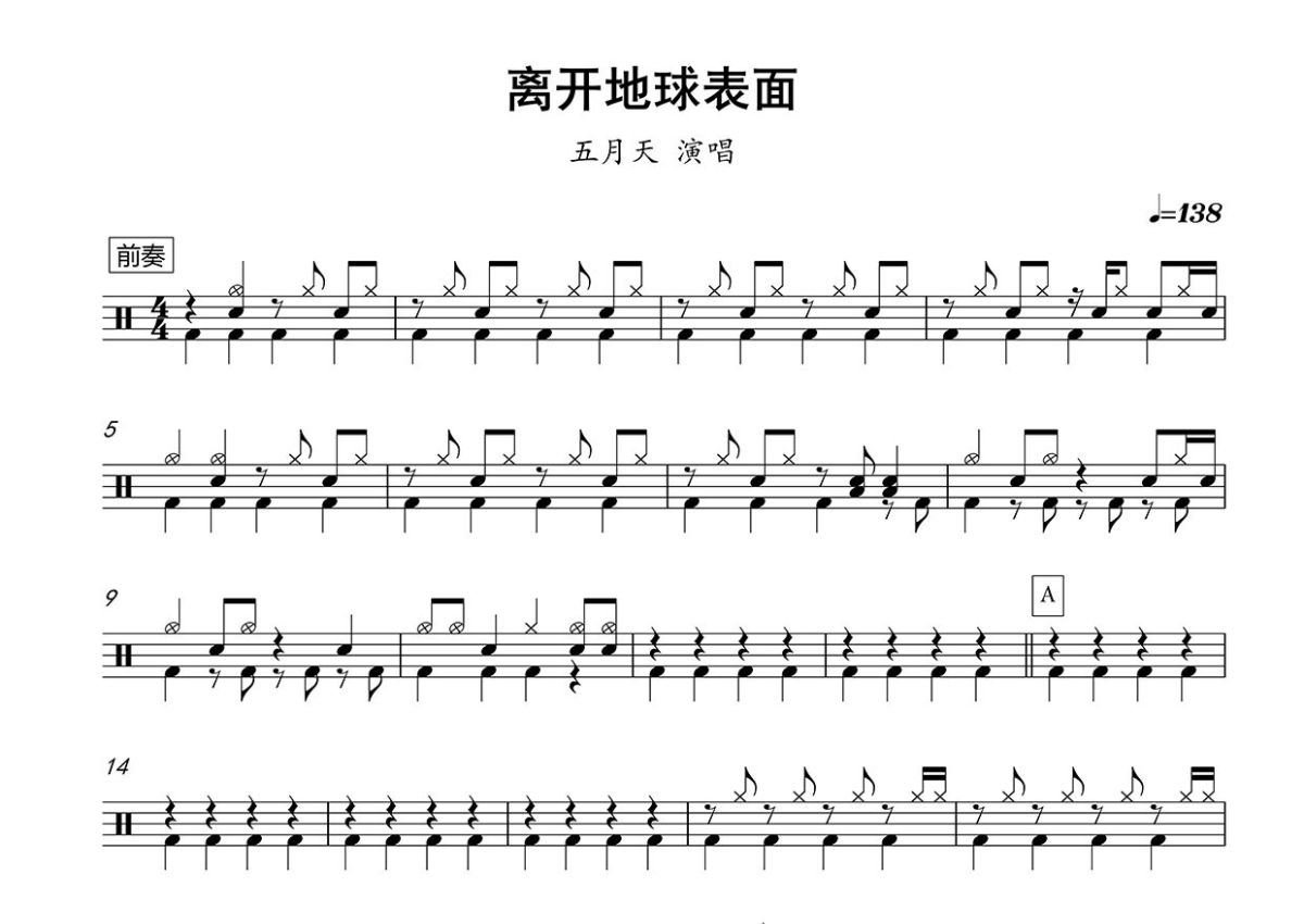 五月天《离开地球表面》鼓谱 - 架子鼓谱