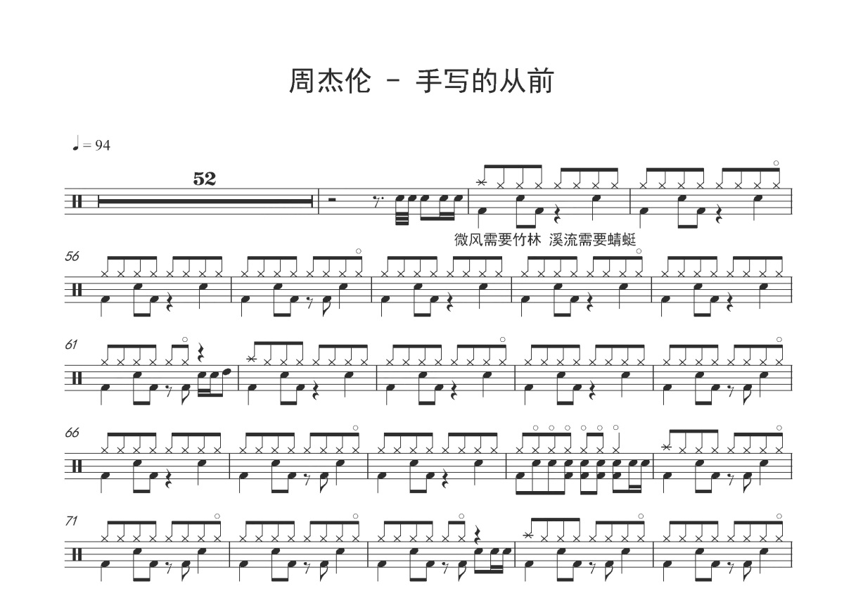 周杰伦《手写的从前》鼓谱 - 架子鼓谱