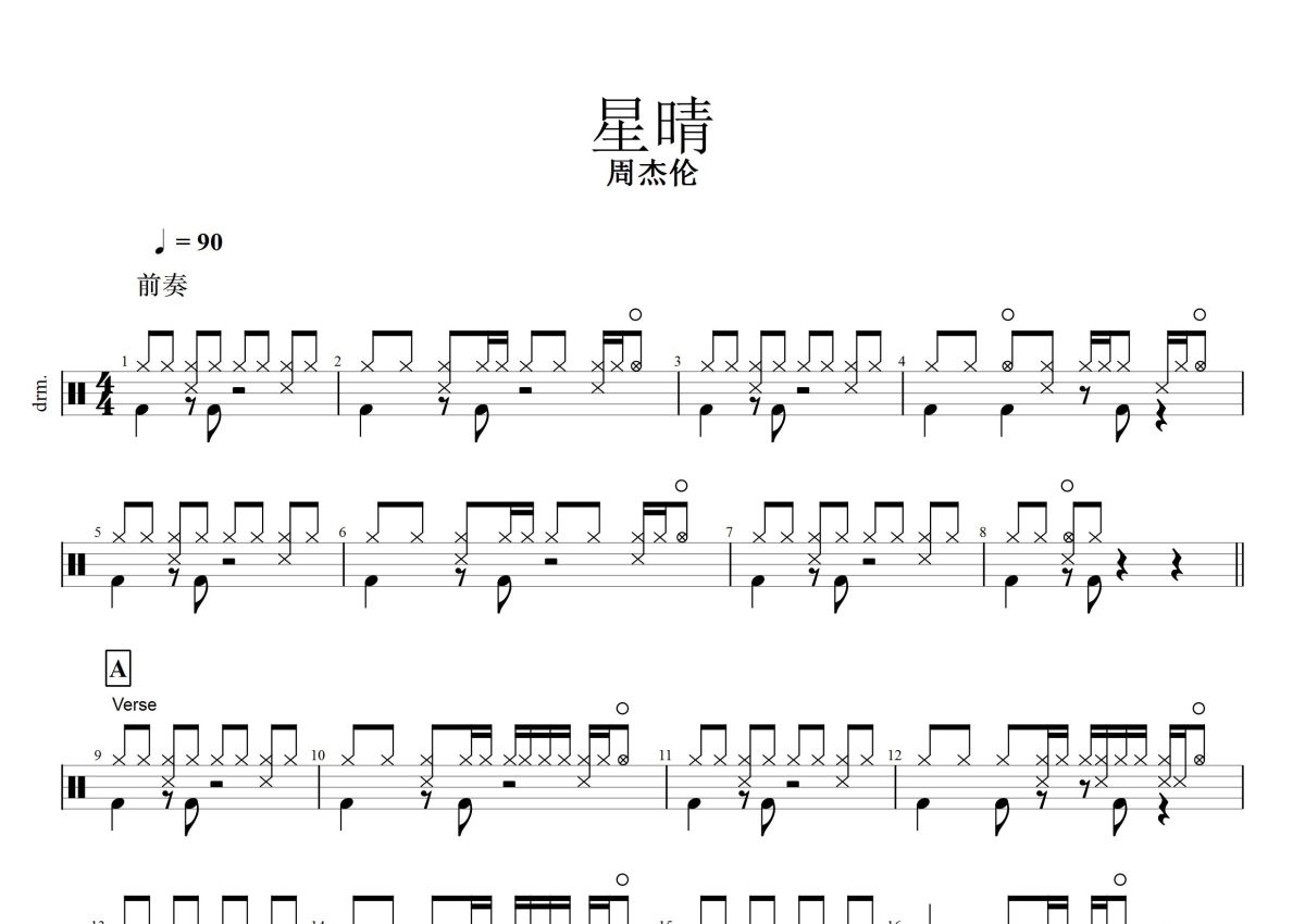 周杰伦《星晴》鼓谱 - 架子鼓谱