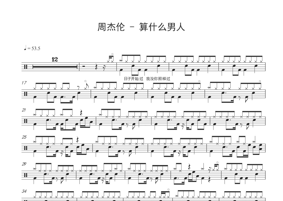 周杰伦《算什么男人》鼓谱 - 架子鼓谱