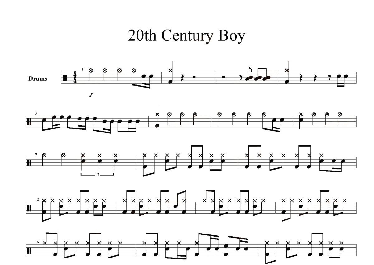 《20th Century Boy》是X JAPAN演唱的一首歌曲,这份鼓谱共有三张高清图谱,图谱由 @打鼓谱 编配上传,图谱使用五线谱编配,使用这份20th Century Boy架子鼓谱,你将能够轻松地敲打出这首X JAPAN的20th Century Boy,快来尝试吧。20th Century Boy (2014 Remaster)
