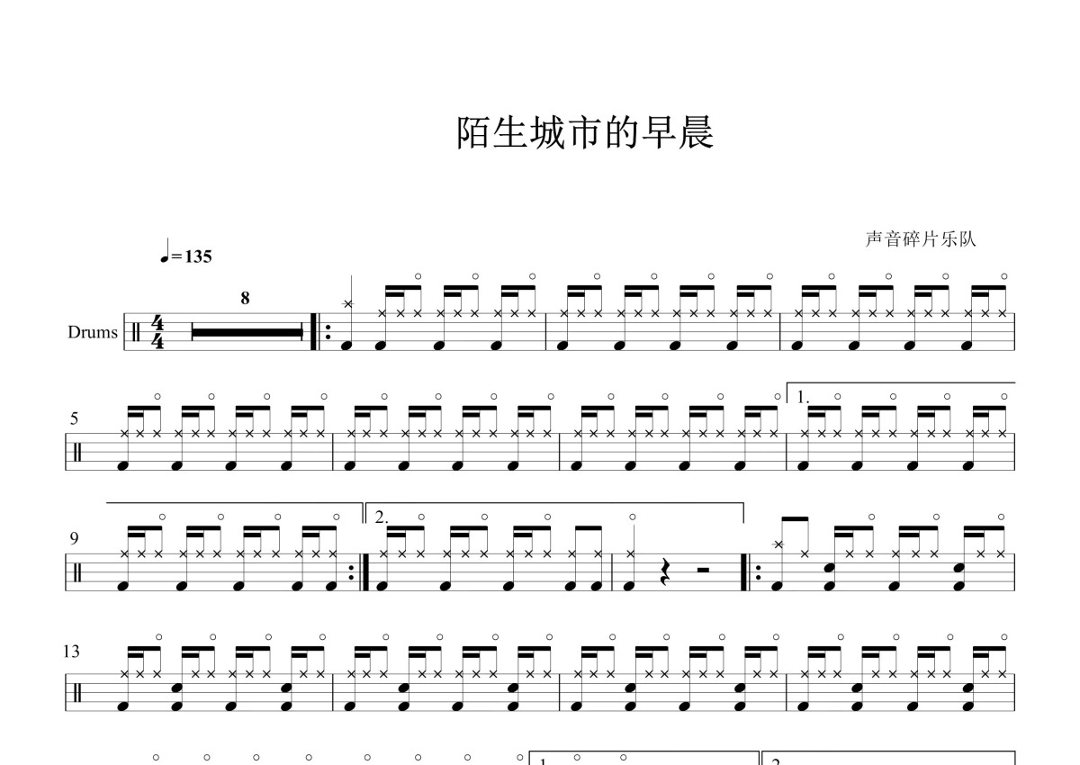 声音碎片《陌生城市的早晨》鼓谱 - 架子鼓谱