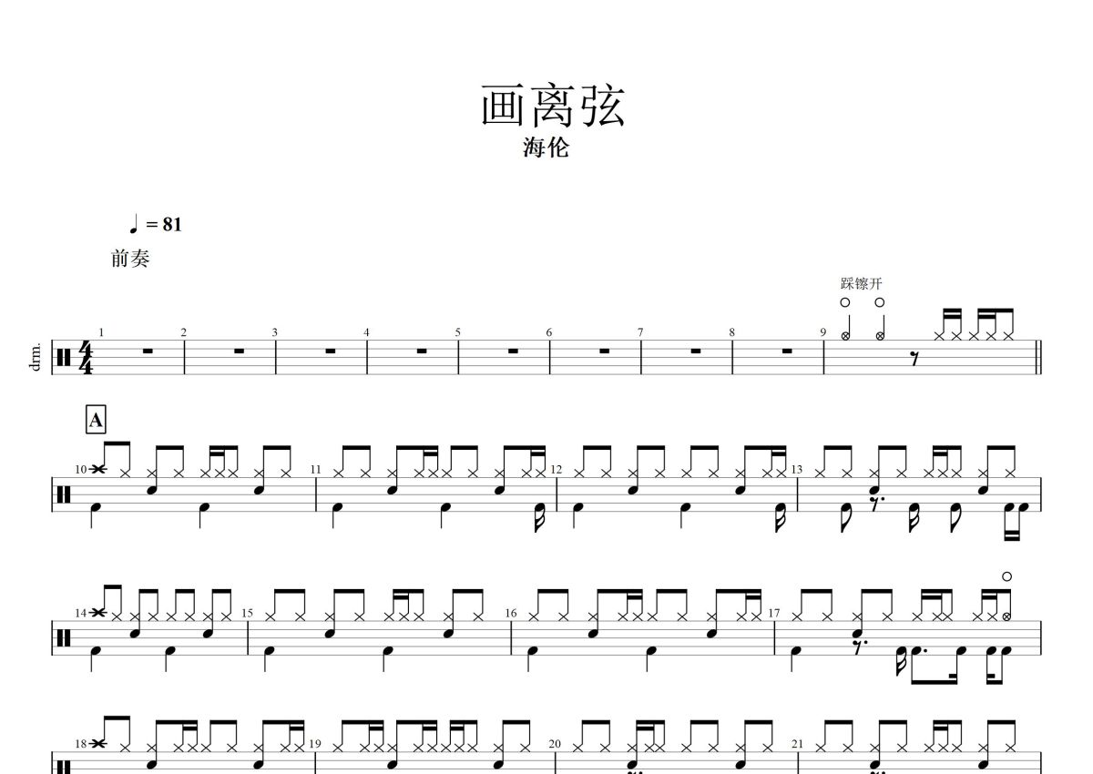 海伦《画离弦》鼓谱 - 架子鼓谱