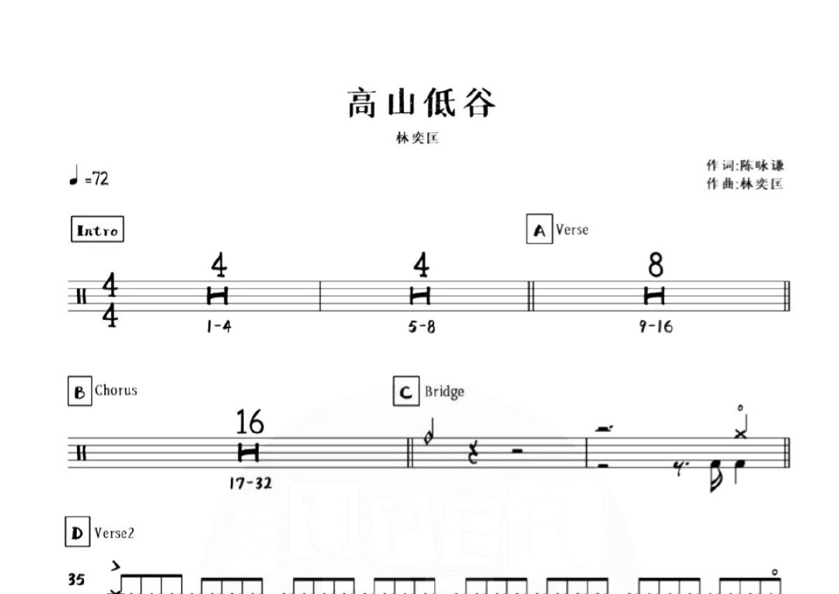 林奕匡《高山低谷》鼓谱 - 架子鼓谱