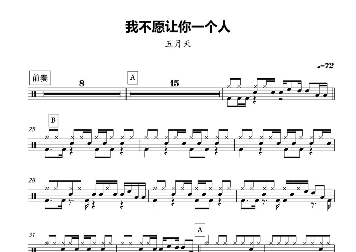 五月天《我不愿让你一个人》鼓谱 - 架子鼓谱