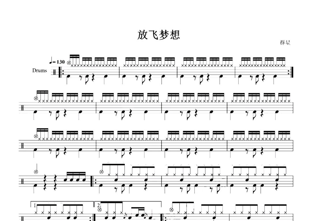 群星《放飞梦想》鼓谱 - 架子鼓谱