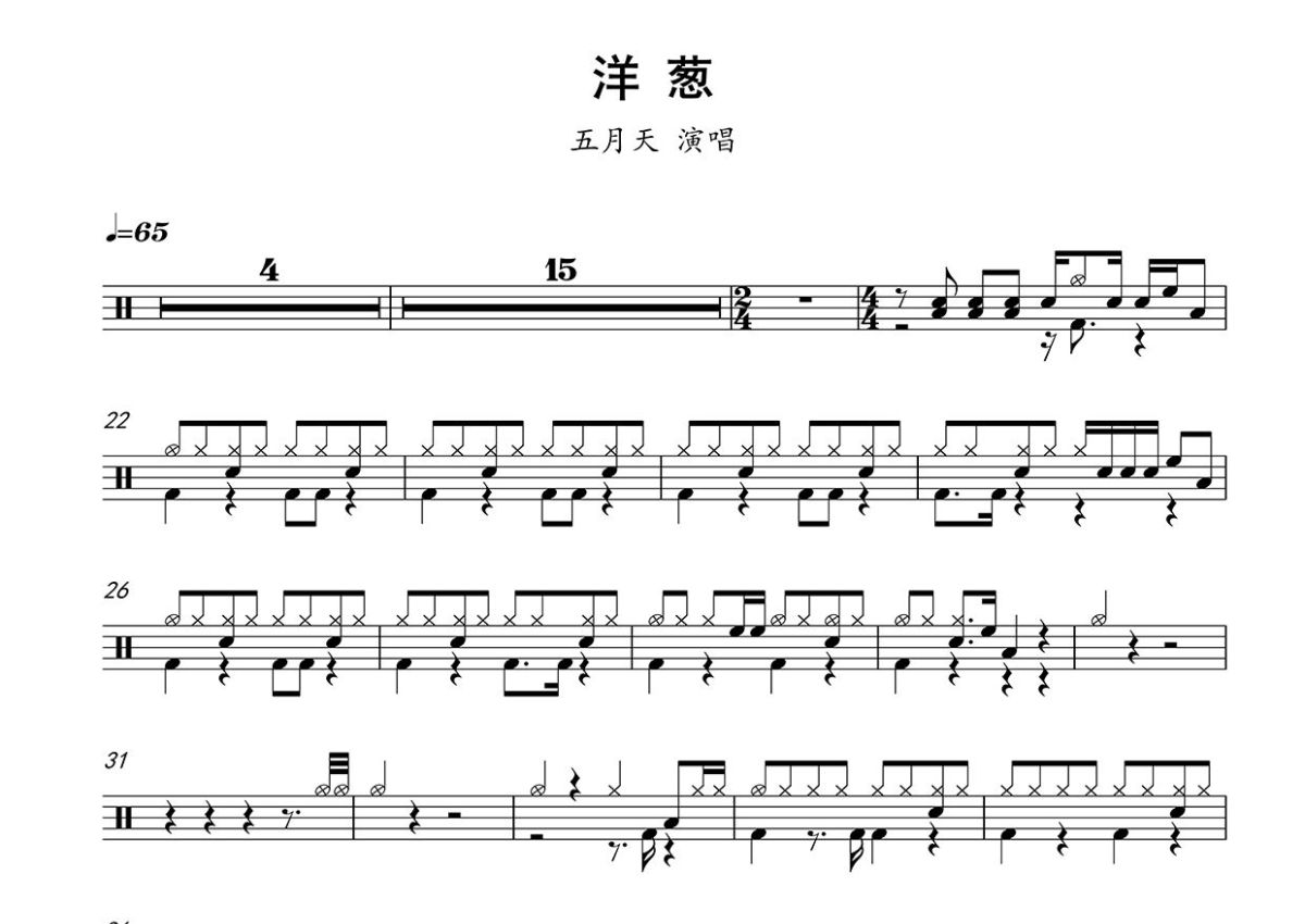 《洋葱》是五月天演唱的一首歌曲,这份鼓谱共有两张高清图谱,图谱由 @打鼓谱 编配上传,图谱使用五线谱编配,使用这份洋葱架子鼓谱,你将能够轻松地敲打出这首五月天的洋葱,快来尝试吧。《洋葱》由阿信作词作曲,收录于2013年12月30日发行的精选集《步步 the Best of 1999~2013 自选作品辑》中,原为阿信写给杨宗纬的一首歌曲。
