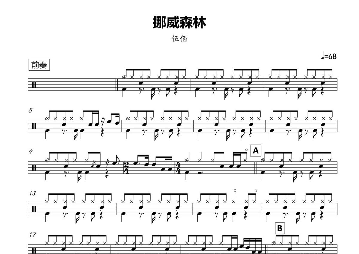 伍佰《挪威的森林》鼓谱 - 架子鼓谱