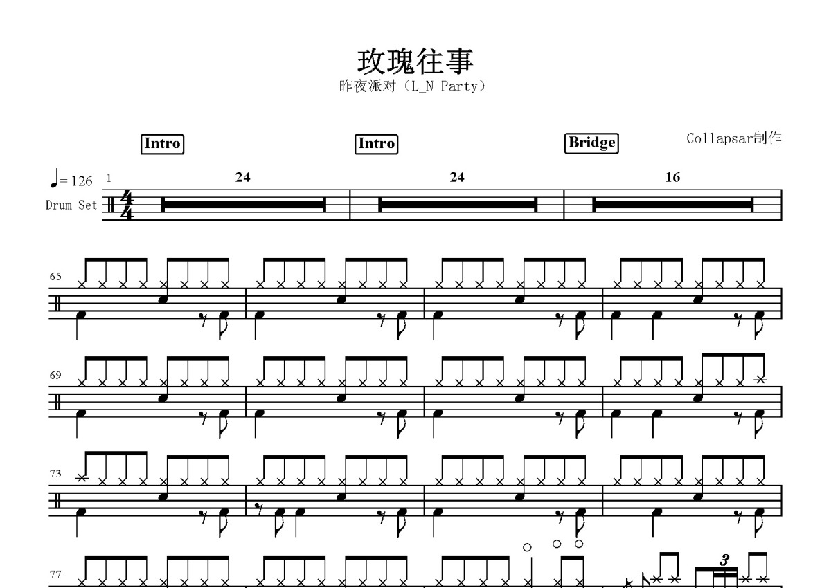 昨夜派对《玫瑰往事》鼓谱 - 架子鼓谱