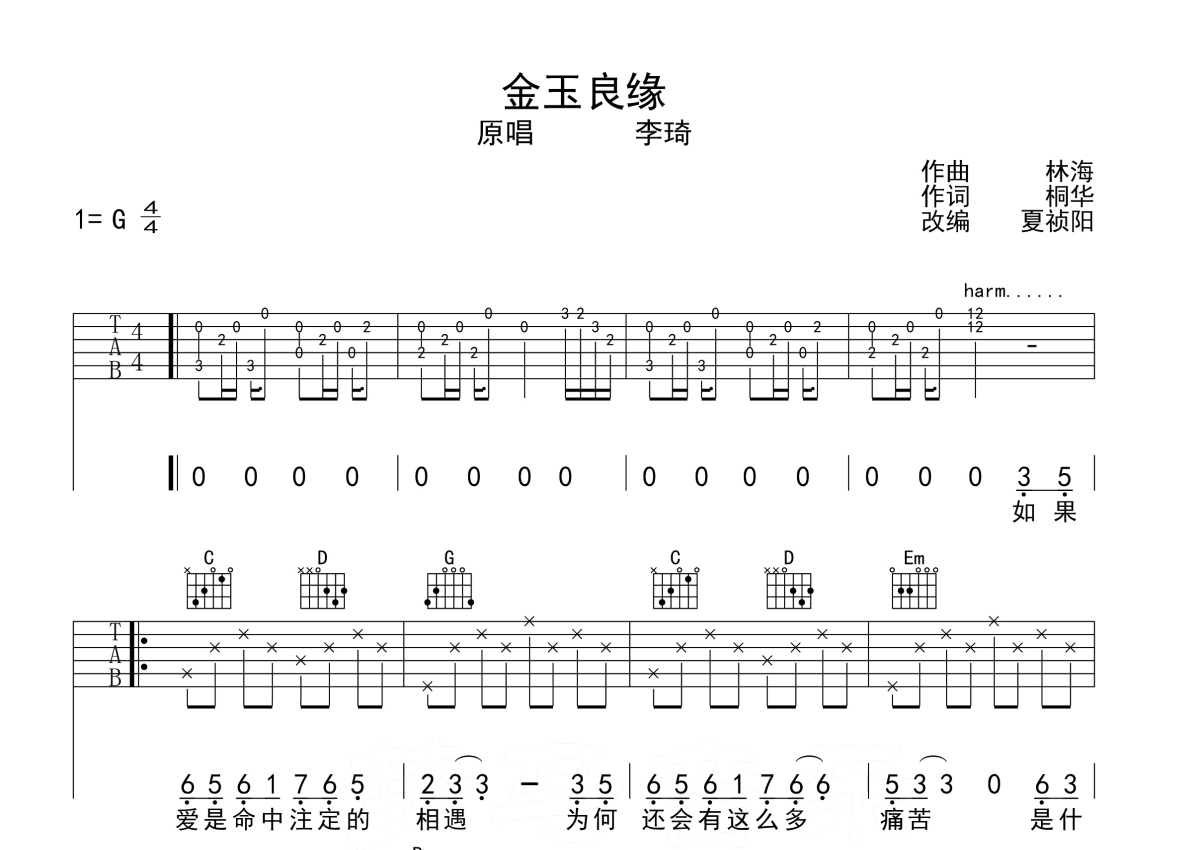 李琦《金玉良缘》吉他谱 - G调弹唱六线谱