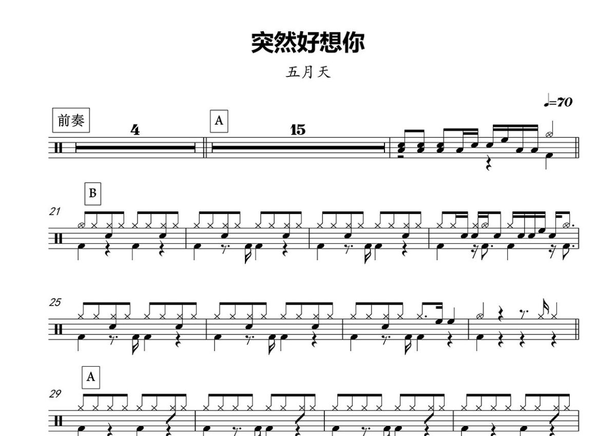 五月天《突然好想你》鼓谱 - 架子鼓谱