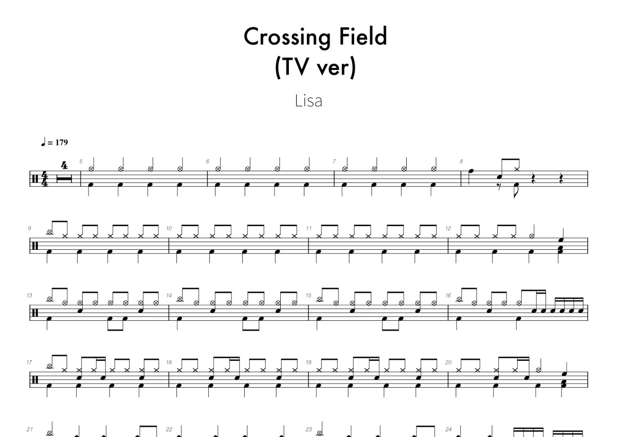 《Crossing Field》是Lisa演唱的一首歌曲,这份鼓谱共有两张高清图谱,图谱由 @打鼓谱 编配上传,图谱使用五线谱编配,使用这份Crossing Field架子鼓谱,你将能够轻松地敲打出这首Lisa的Crossing Field,快来尝试吧。《crossing field》是日本动画《刀剑神域》第一季OP(片头曲),由歌手LiSA演唱,渡边翔填词谱曲,完整歌曲时长约4分11秒,同名歌手专辑于2012年8月8日发售。在8月11日的Oricon单曲CD日榜上登上第一位,截止2013年1月,《crossing field》单曲CD的销售量高达88444张 。