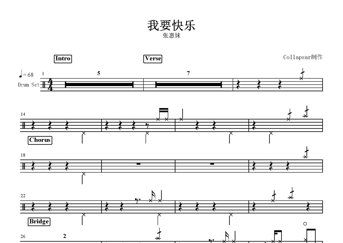 张惠妹《我要快乐》鼓谱 - 架子鼓谱