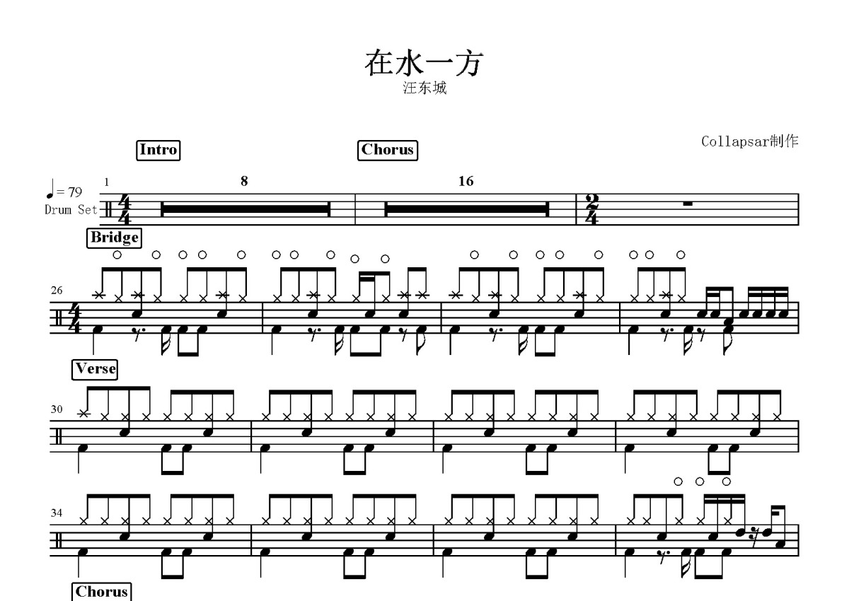 汪东城《在水一方》鼓谱 - 架子鼓谱
