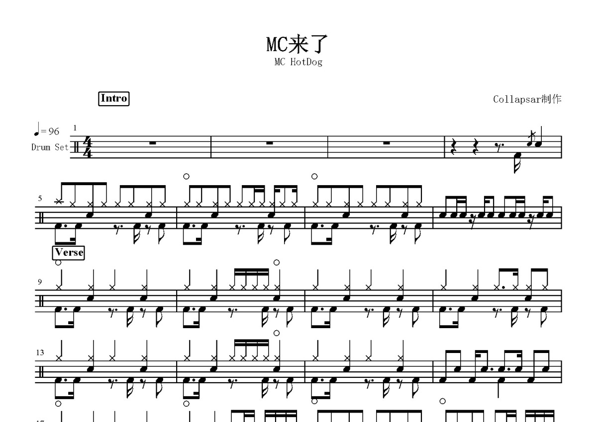 MC HotDog《mc来了》鼓谱 - 架子鼓谱