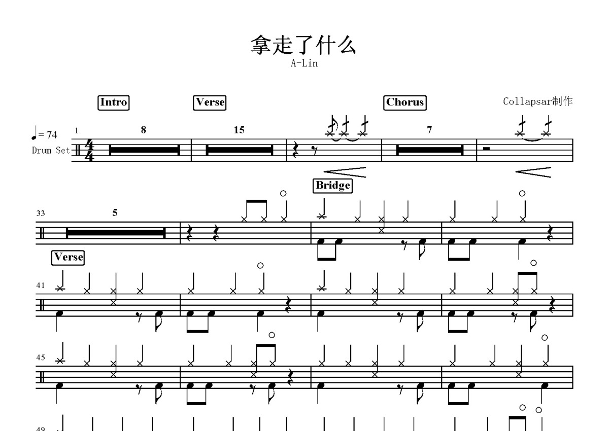 A-Lin《拿走了什么》鼓谱 - 架子鼓谱