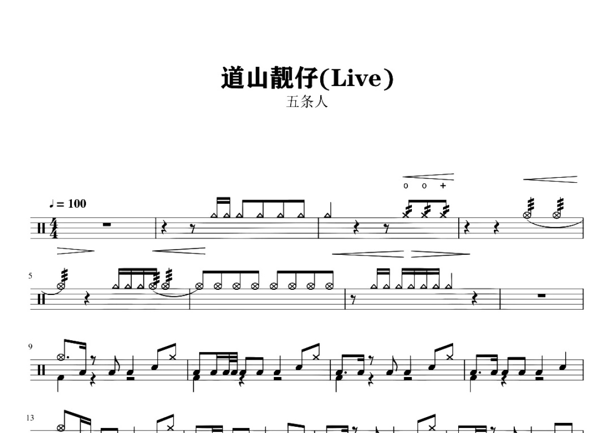 五条人《道山靓仔》鼓谱 - 架子鼓谱 - live
