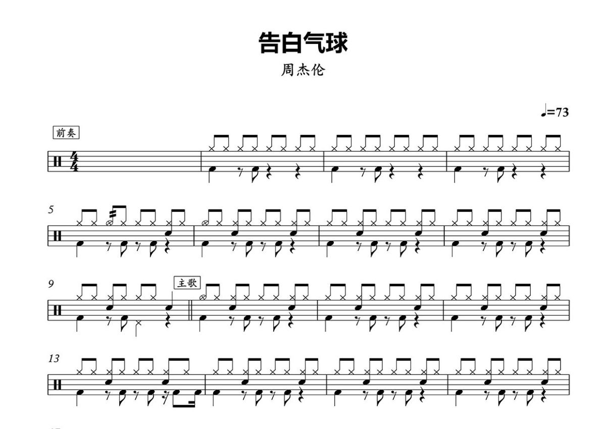 周杰伦《告白气球》鼓谱 - 架子鼓谱
