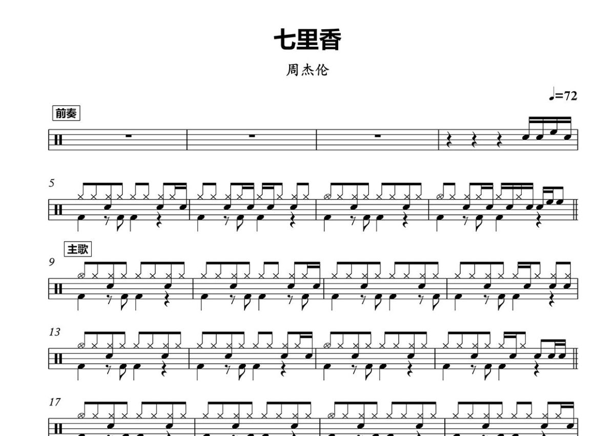 周杰伦《七里香》鼓谱 - 架子鼓谱