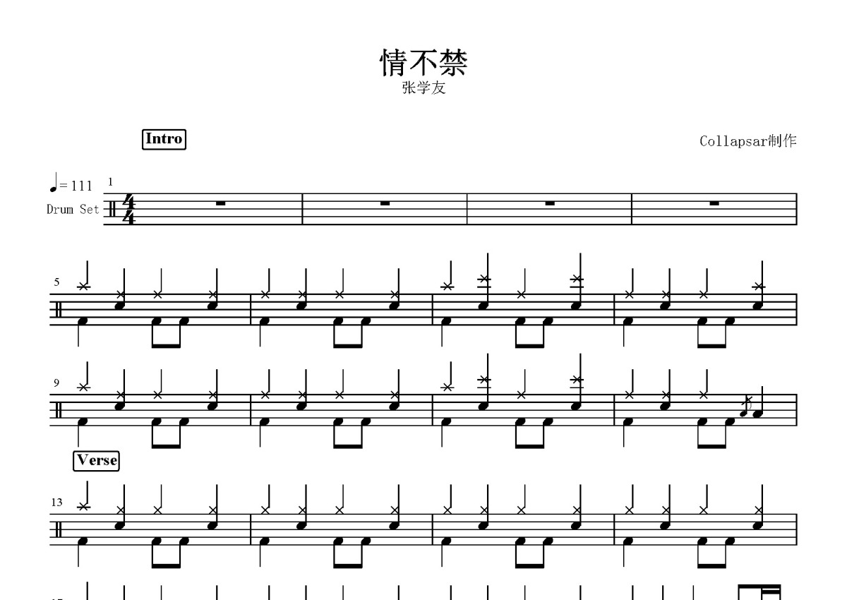 张学友《情不禁》鼓谱 - 架子鼓谱