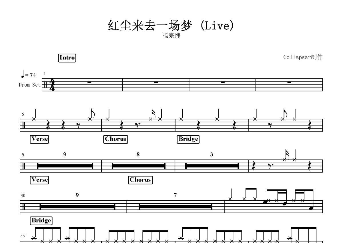 杨宗纬《红尘来去一场梦》鼓谱 - 架子鼓谱 - Live