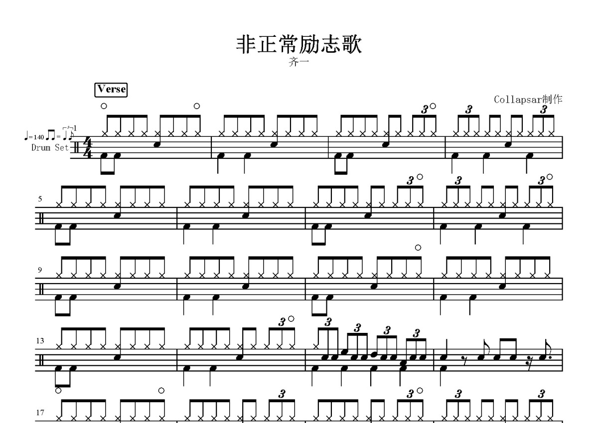 齐一《非正常励志歌》鼓谱 - 架子鼓谱