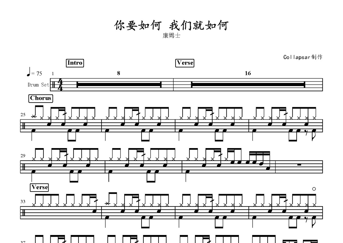 康姆士《你要如何我们就如何》鼓谱 - 架子鼓谱