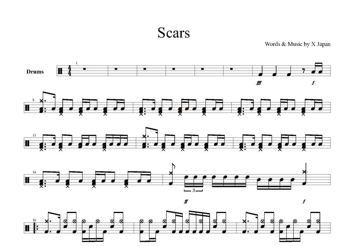 X-JAPAN《Scars》鼓谱 - 架子鼓谱