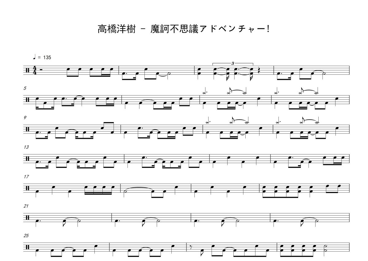 高橋洋樹《魔訶不思議アドベンチャー!》鼓谱 - 架子鼓谱
