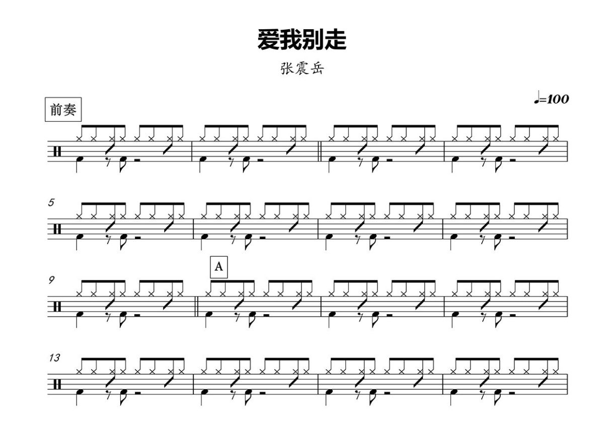 张震岳《爱我别走》鼓谱 - 架子鼓谱