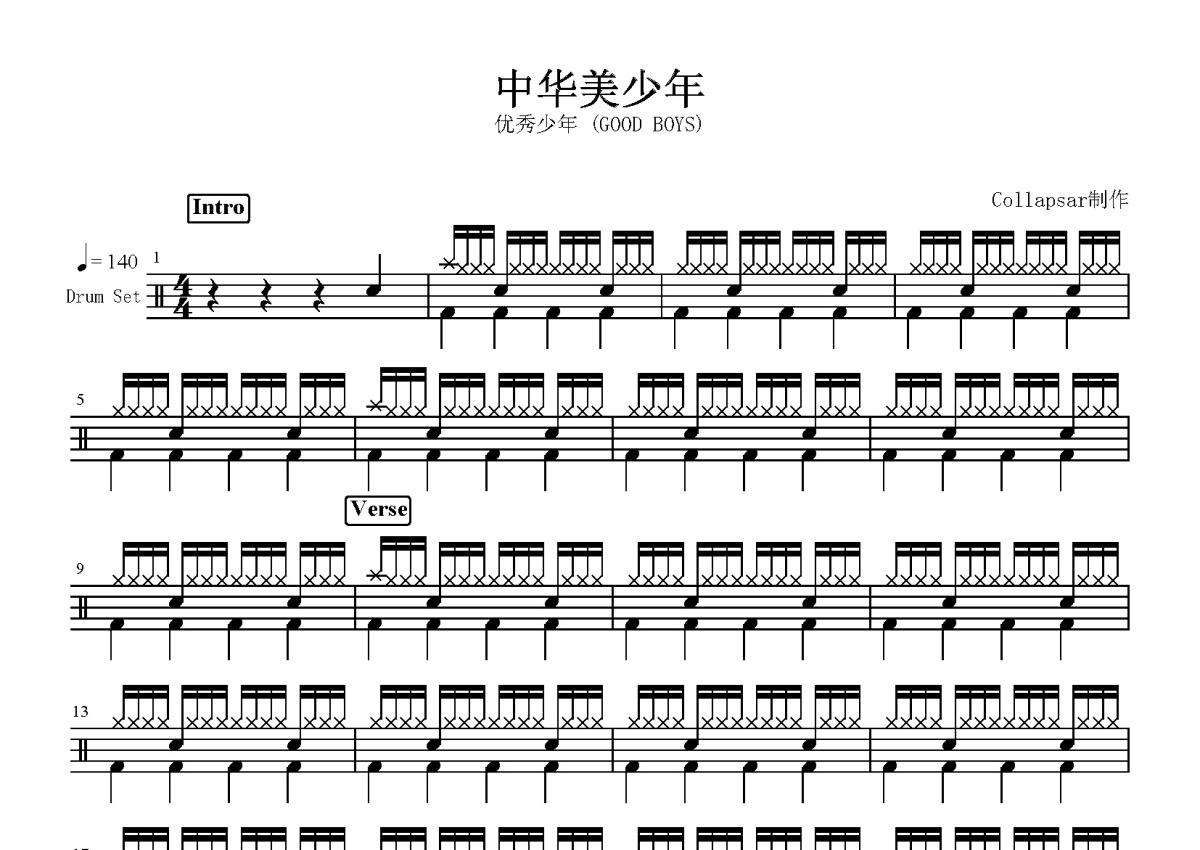 优秀少年团《中华美少年》鼓谱 - 架子鼓谱
