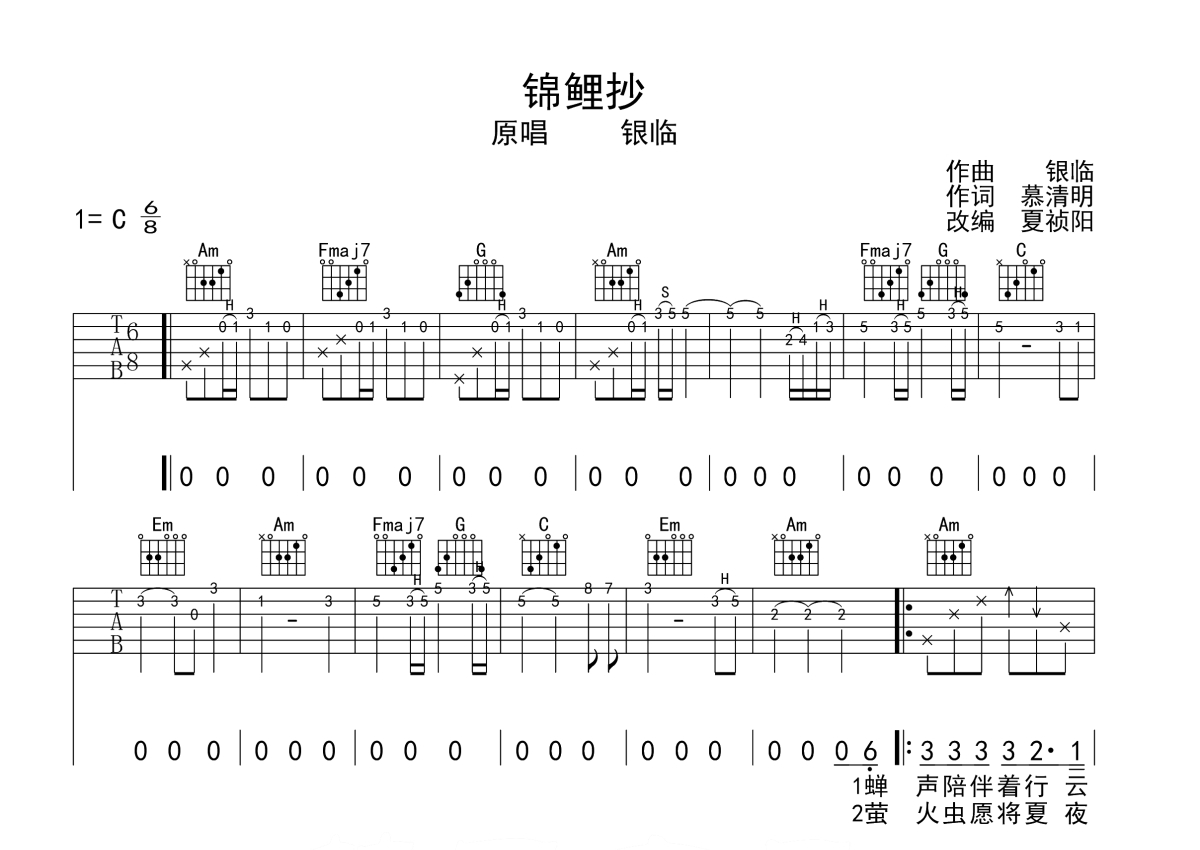 银临《锦鲤抄》吉他谱 - C调弹唱六线谱