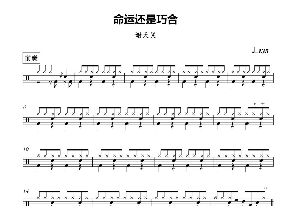 谢天笑《命运还是巧合》鼓谱 - 架子鼓谱