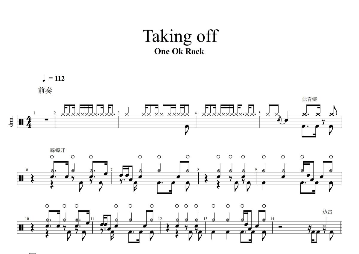 《Taking Off》是ONE OK ROCK演唱的一首歌曲,这份鼓谱共有三张高清图谱,图谱由 @打鼓谱 编配上传,图谱使用五线谱编配,使用这份Taking Off架子鼓谱,你将能够轻松地敲打出这首ONE OK ROCK的Taking Off,快来尝试吧。 Taking Off(远走高飞)-ONE OK ROCK 作词: Taka/Nick Long/Dan Lancaster 作曲: Taka/Nick Long/Dan Lancaster Stuck in the same routine陷入一成不变的桎梏 ..。