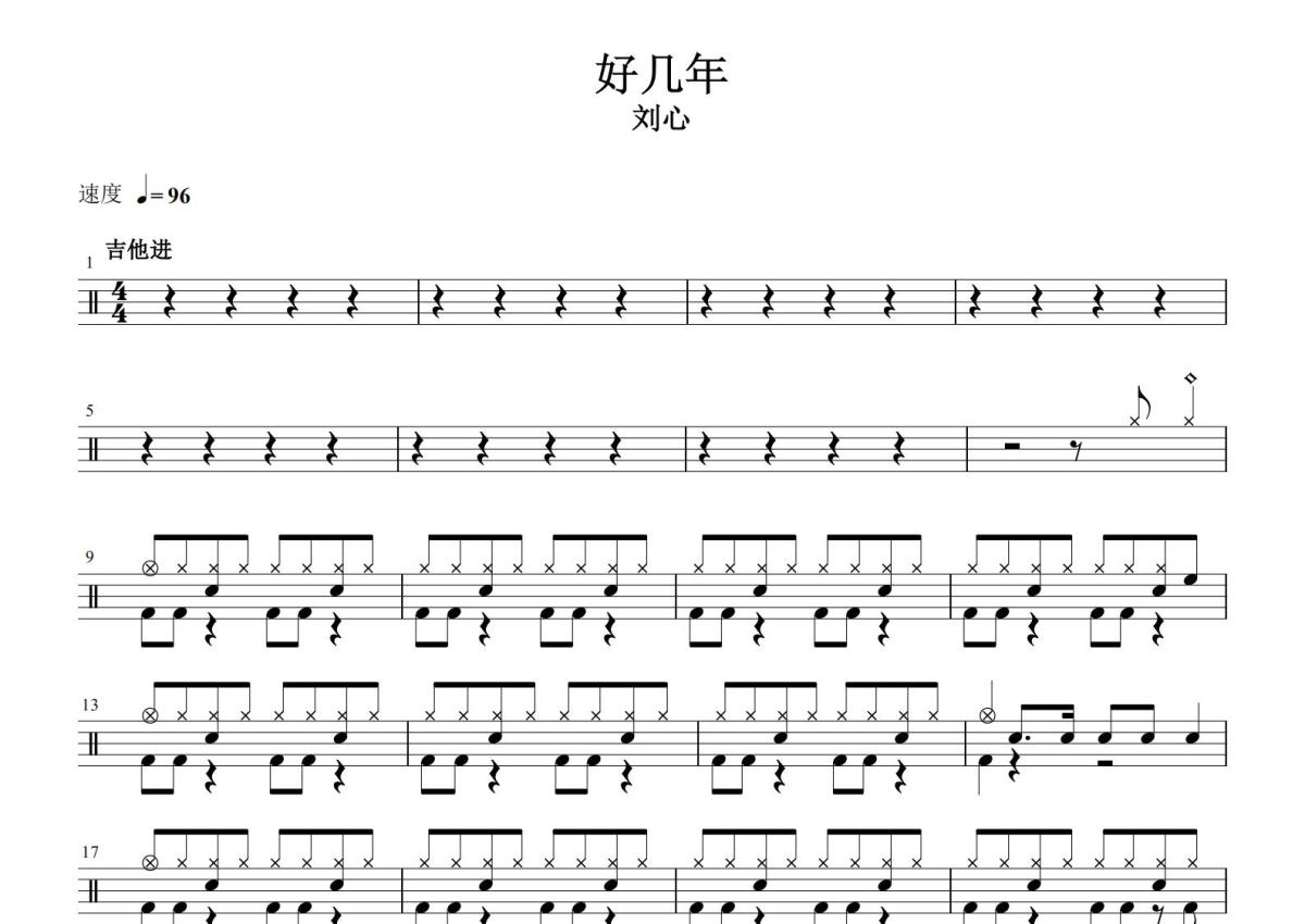 刘心《好几年》鼓谱 - 架子鼓谱