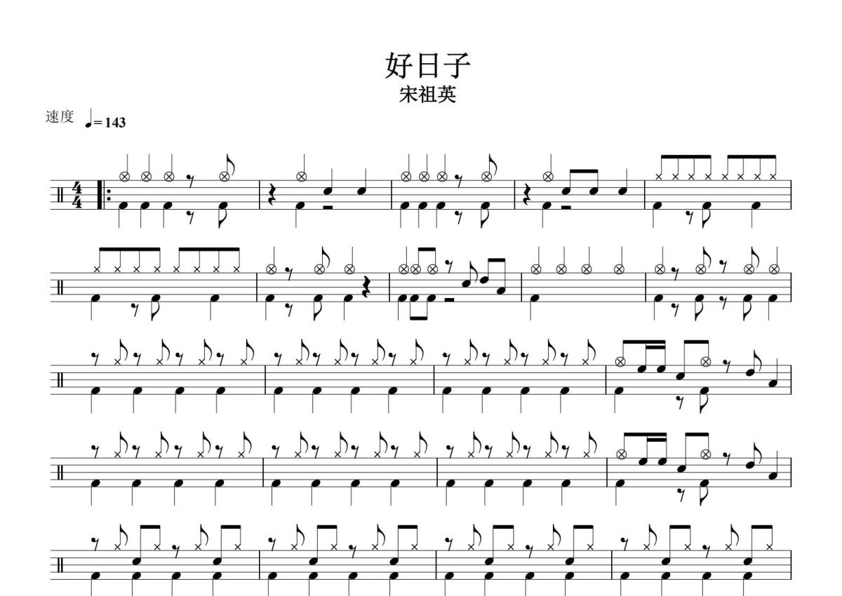 宋祖英《好日子》鼓谱 - 架子鼓谱