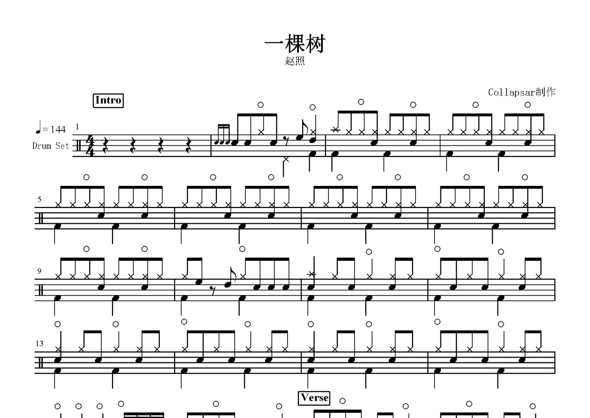 赵照《一棵树》鼓谱 - 架子鼓谱