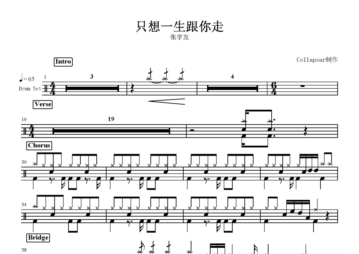 张学友《只想一生跟你走》鼓谱 - 架子鼓谱