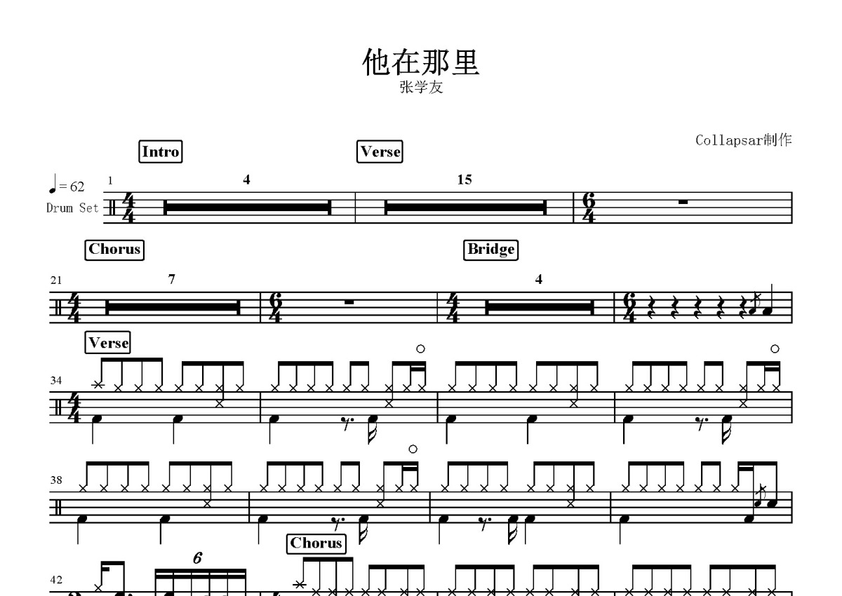 张学友《他在那里》鼓谱 - 架子鼓谱