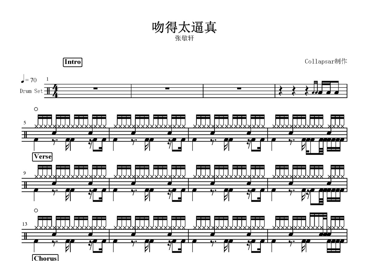 张敬轩《吻得太逼真》鼓谱 - 架子鼓谱