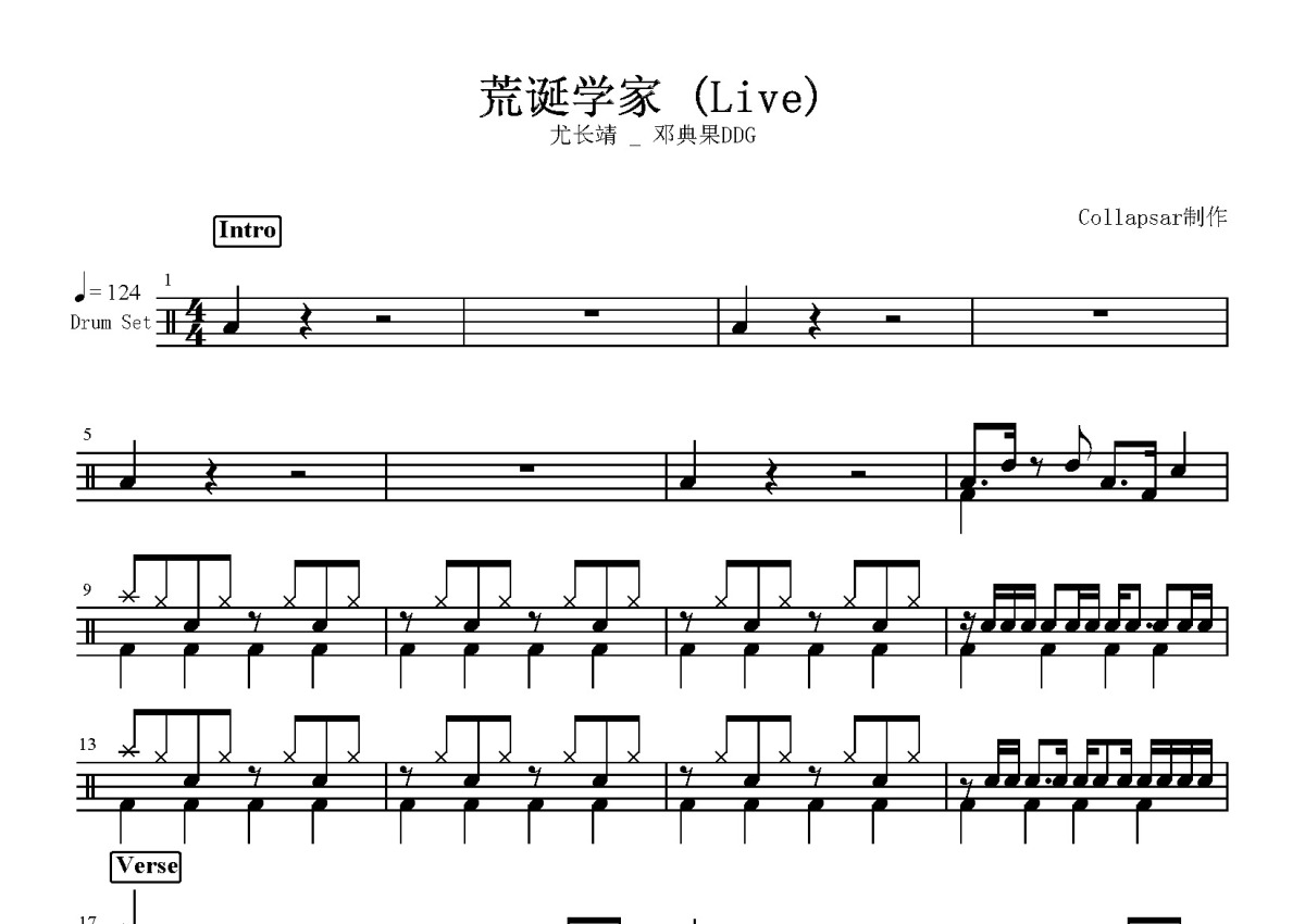 尤长靖/邓典果DDG《荒诞学家》鼓谱 - 架子鼓谱 - Live