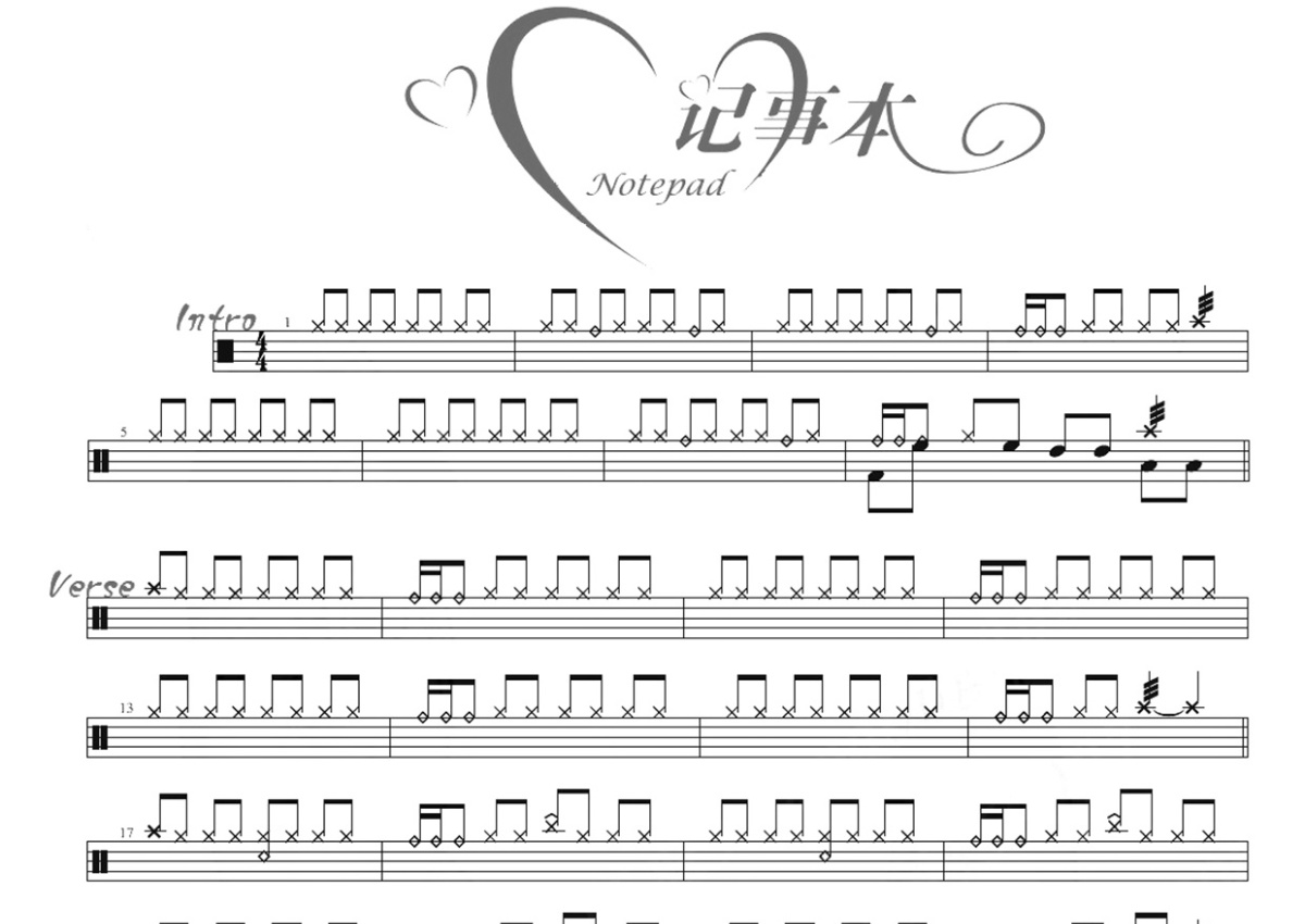 《记事本》是陈慧琳演唱的一首歌曲,这份鼓谱共有三张高清图谱,图谱由 @打鼓谱 编配上传,图谱使用五线谱编配,使用这份记事本架子鼓谱,你将能够轻松地敲打出这首陈慧琳的记事本,快来尝试吧。《记事本》是陈慧琳原唱的一首歌曲,由周传雄,陈信荣填词,周传雄谱曲,周传雄作曲,收录在陈慧琳1998年12月发行的专辑爱我不爱中,歌曲时长4分12秒。陈慧琳(Kelly Chen),1972年9月13日出生于中国香港湾仔区,中国香港女歌手、演员,毕业于纽约帕森斯设计学院(Parsons School of Design )修读Graphic Design 。