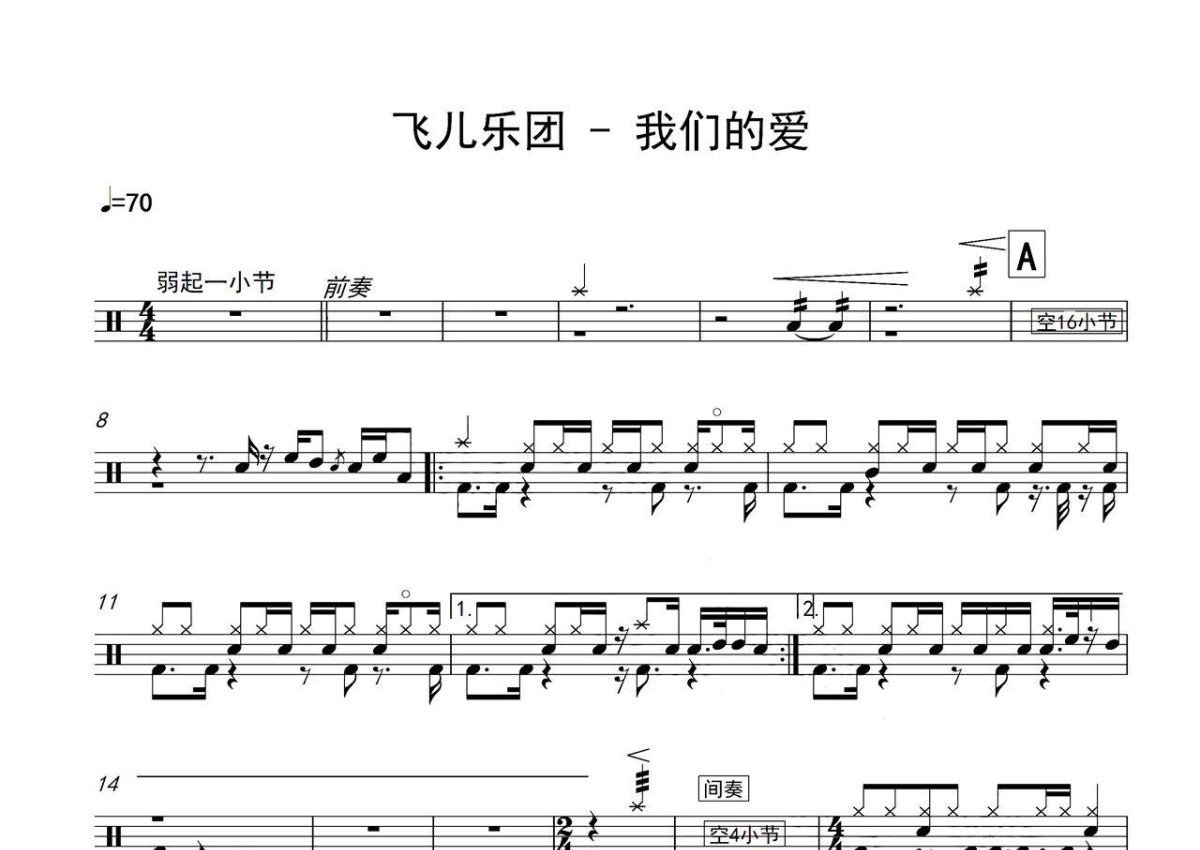 飞儿乐团《我们的爱》鼓谱 - 架子鼓谱