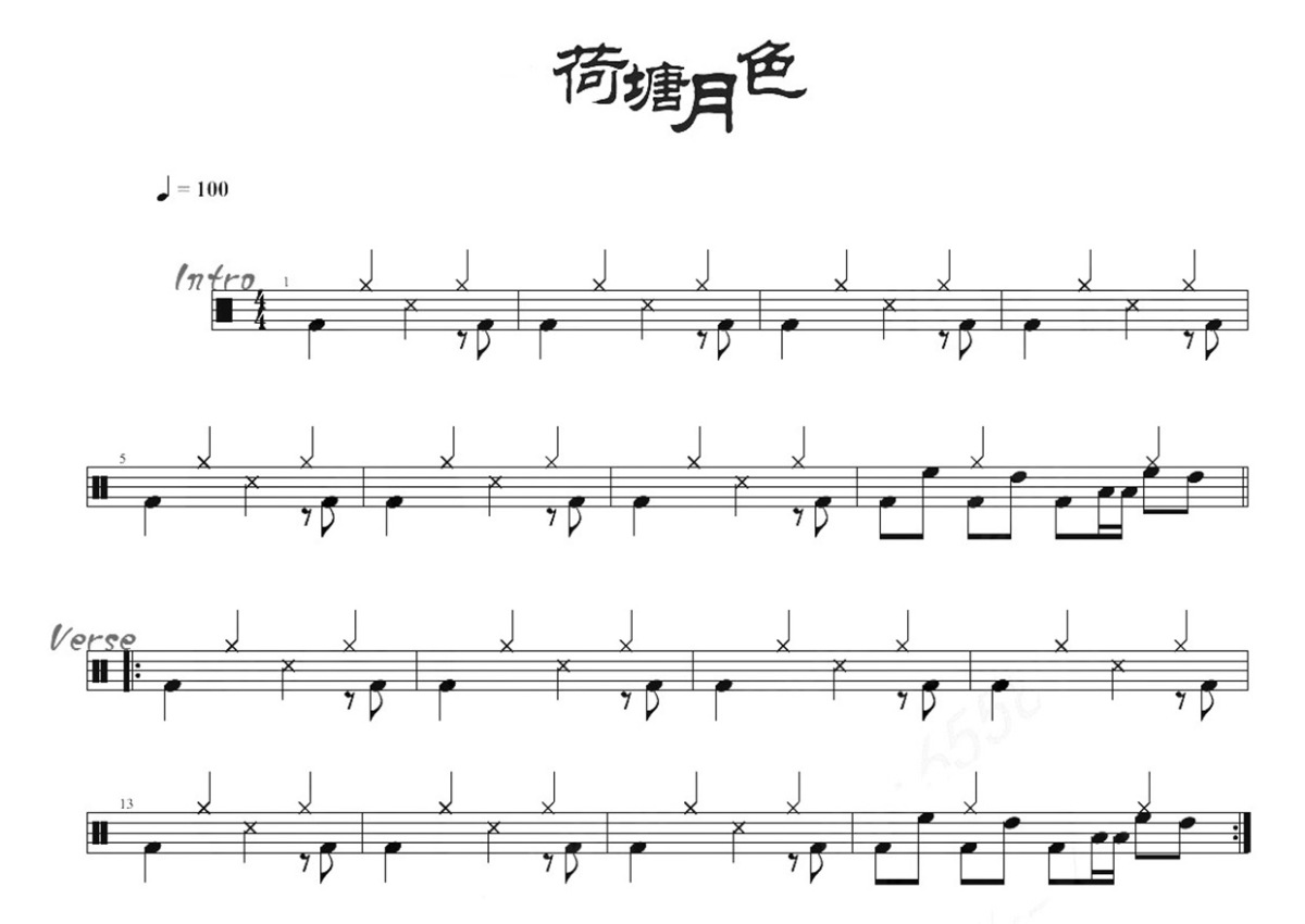 凤凰传奇《荷塘月色》鼓谱 - 架子鼓谱