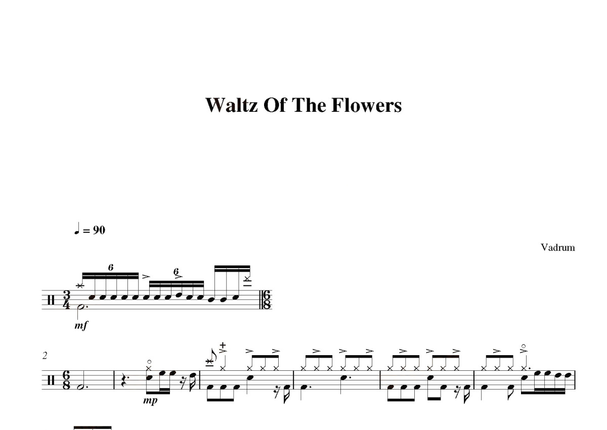 《Waltz of the flowers》是Vadrum演唱的一首歌曲,这份鼓谱共有四张高清图谱,图谱由 @打鼓谱 编配上传,图谱使用五线谱编配,使用这份Waltz of the flowers架子鼓谱,你将能够轻松地敲打出这首Vadrum的Waltz of the flowers,快来尝试吧。2018年2月26日 花之圆舞曲Waltz Flowers选自芭蕾舞剧《胡桃夹子》From NutcrackerSuite 柴可夫斯基 柴可夫斯基 Tschaijkowski 1/20 152Standard tuning Ao7/Eb。