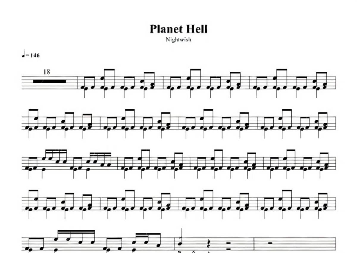 Nightwish夜愿《Planet Hell》鼓谱 - 架子鼓谱