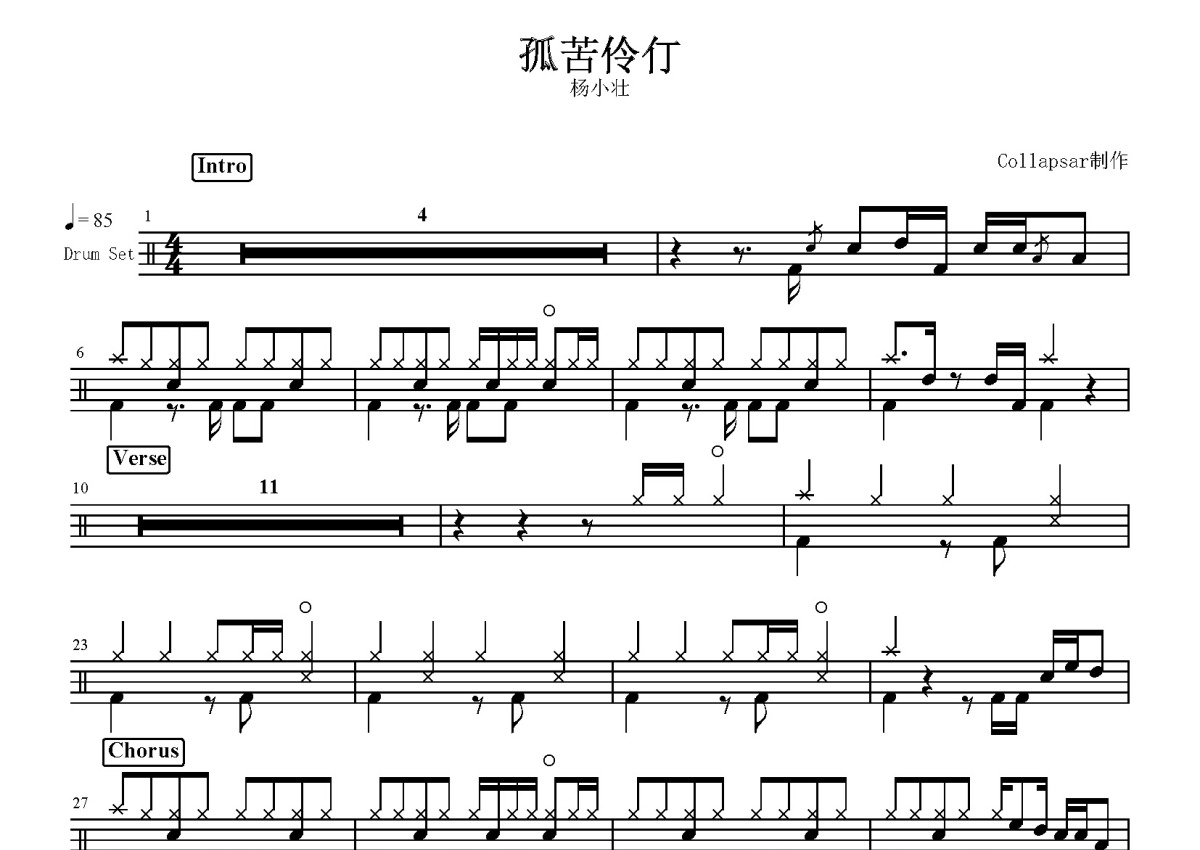 杨小壮《孤苦伶仃》鼓谱 - 架子鼓谱